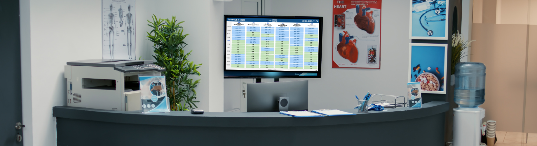 - Розклад лікарів - для великих екранів, розміщується в холі медичного закладу, або на поверсі