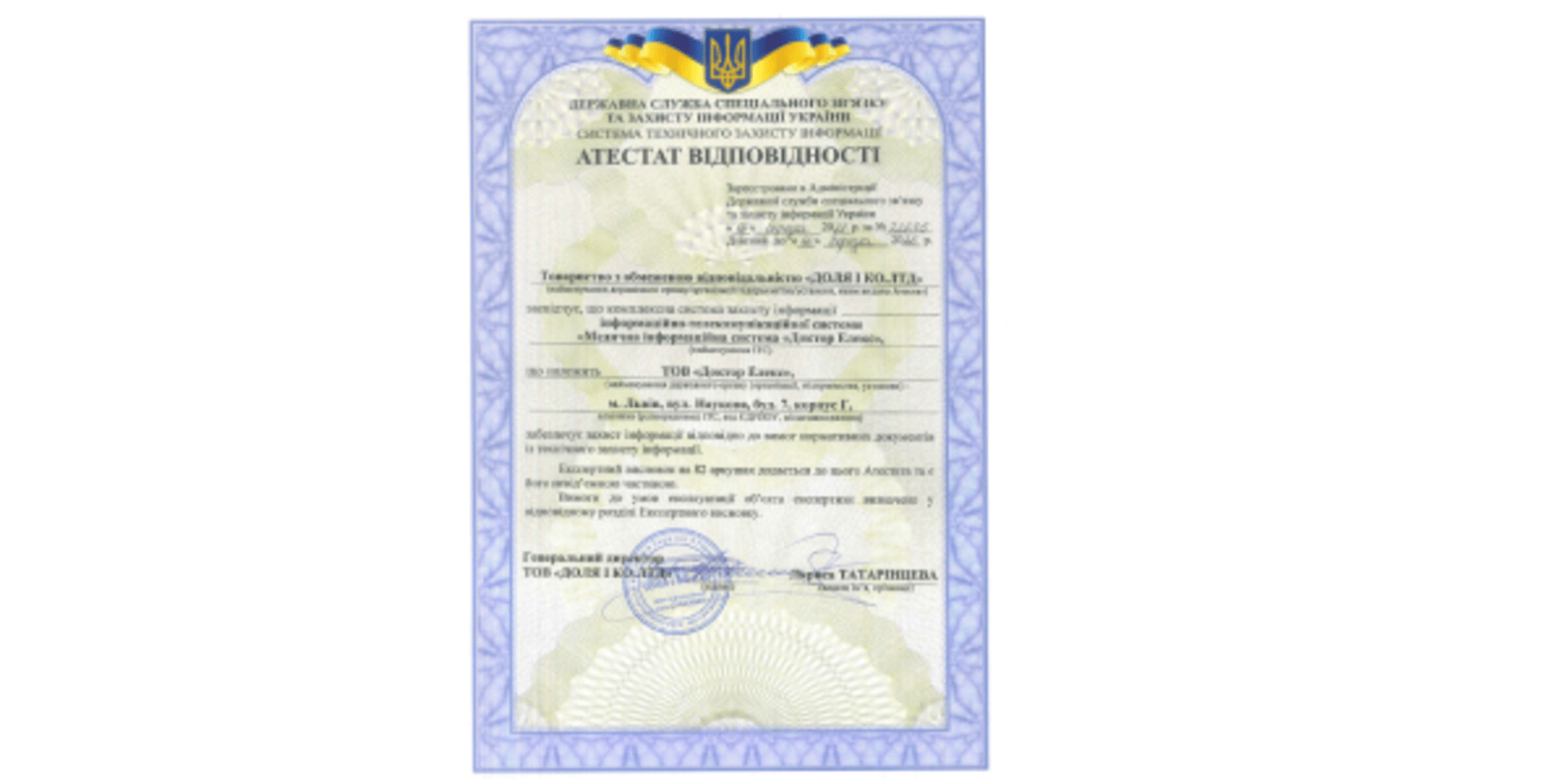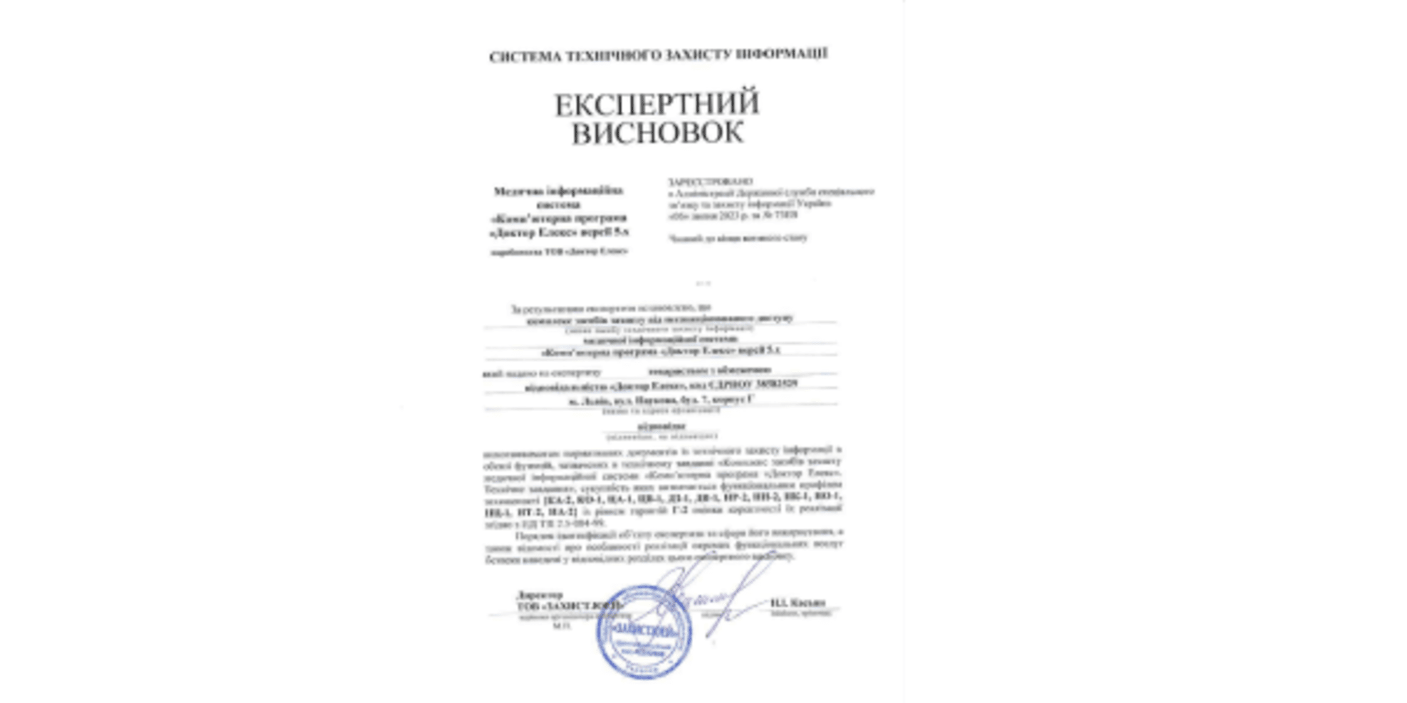 Медична інформаційна система Doctor Eleks відповідає вимогам ЕСОЗ і забезпечує заклади технічними можливосстями для взаємодії з компонентами eHealth.